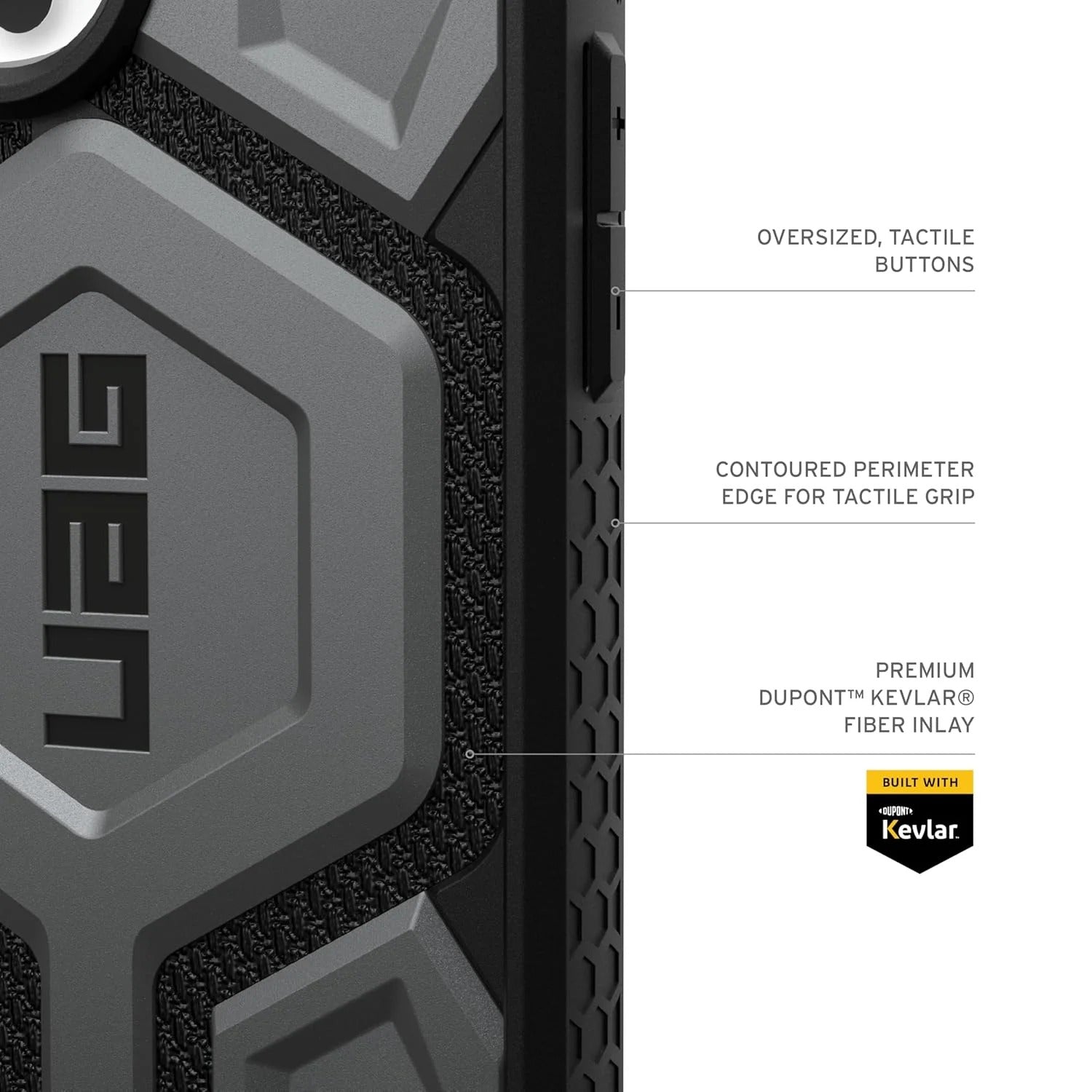 - Contoured perimeter edge for tractile grip and easy handling. Ultra-responsive oversized tactile buttons deliver crisp, clean click-feel. Precise cutout for full and easy access to the Action Button. Lanyard card compatibility (lanyard not included) for on the go functionality.