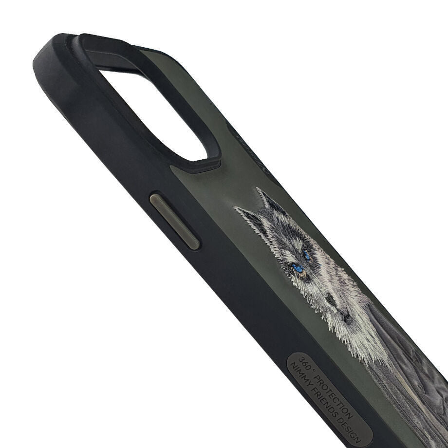 Nimmy Embroidery for iPhone 14 Pro TPU+PU Leather Shockproof Fashion Series-Wolf