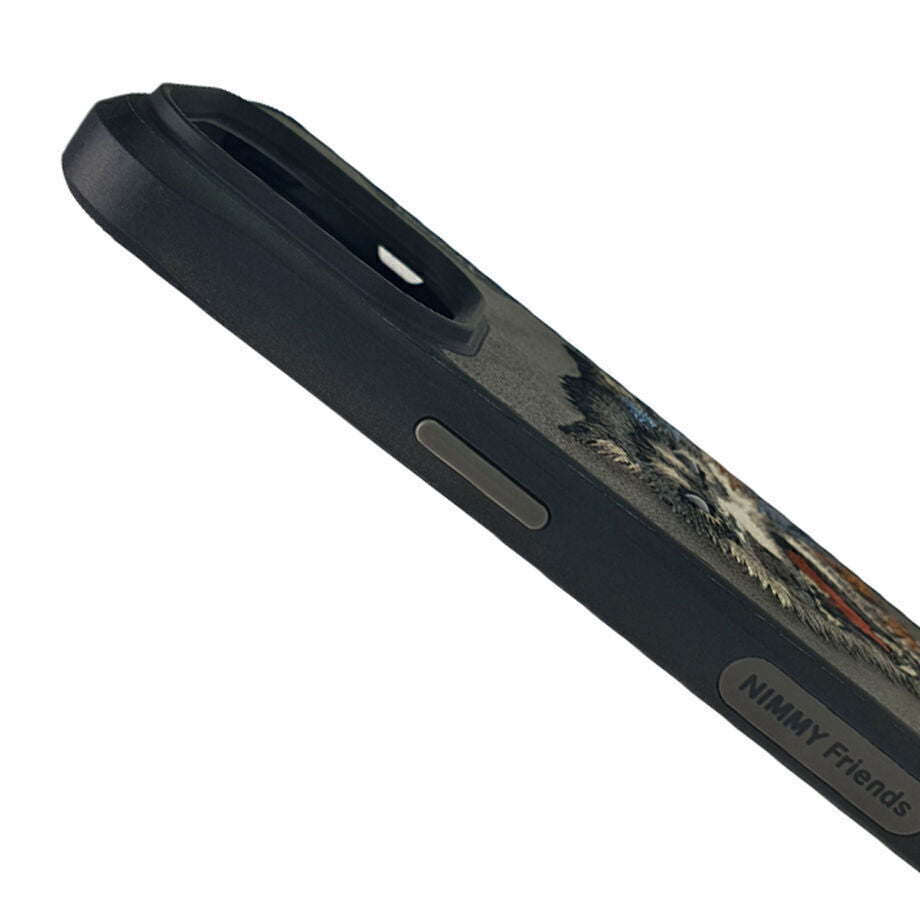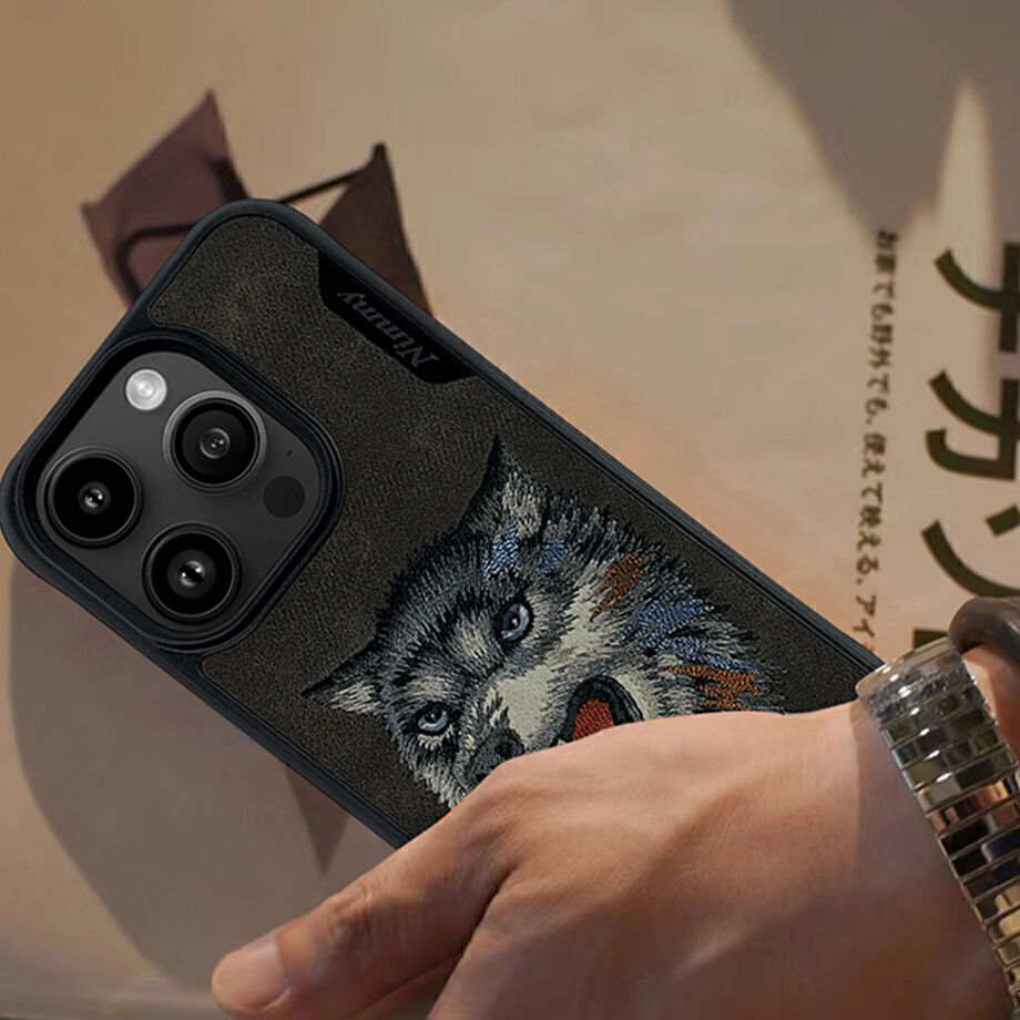 iPhone 15 Nimmy Embroidery Leather Shockproof Dazzling Series - Wolf