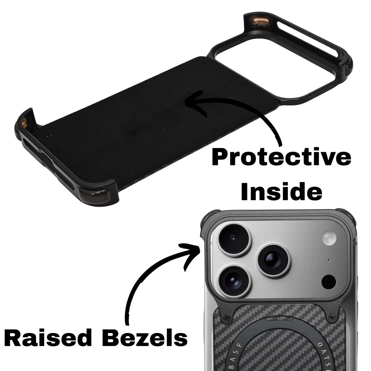 Meet the Titan Carbon Metal Case - engineered to survive life’s knocks while turning heads. Its carbon-reinforced core provides rigid structural strength, while the CNC-machined metal bracket and ring deliver rock-solid protection and a confident grip.