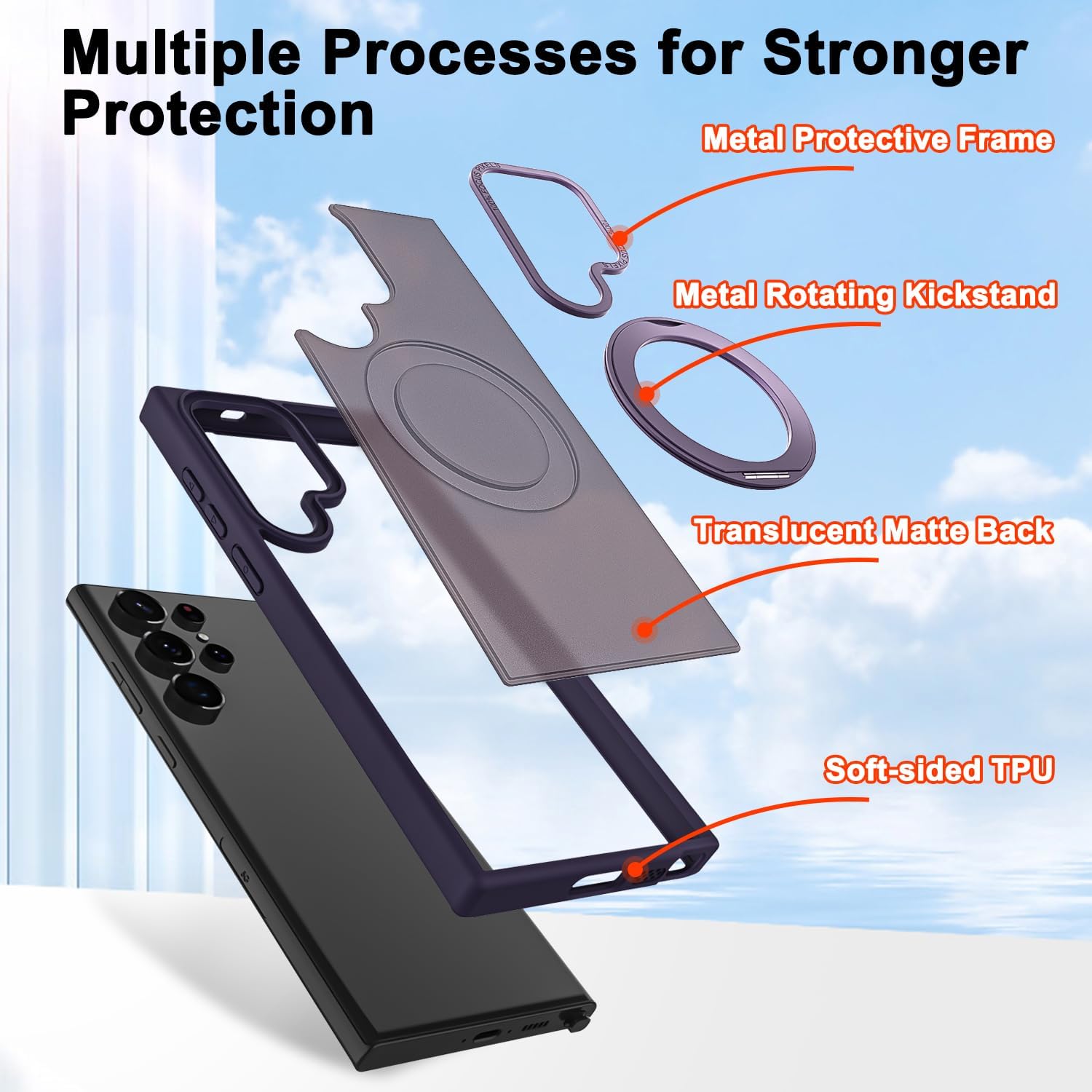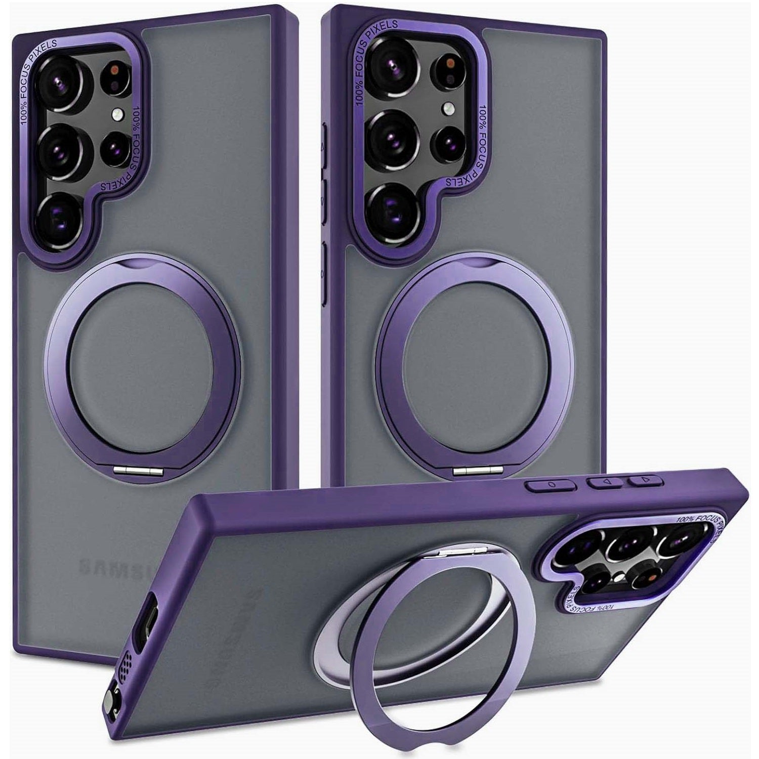 Samsung Galaxy S23 Ultra Shockproof Translucent Matte Case with 360° Rotatable Magnetic Magsafe Ring & Kickstand - Purple