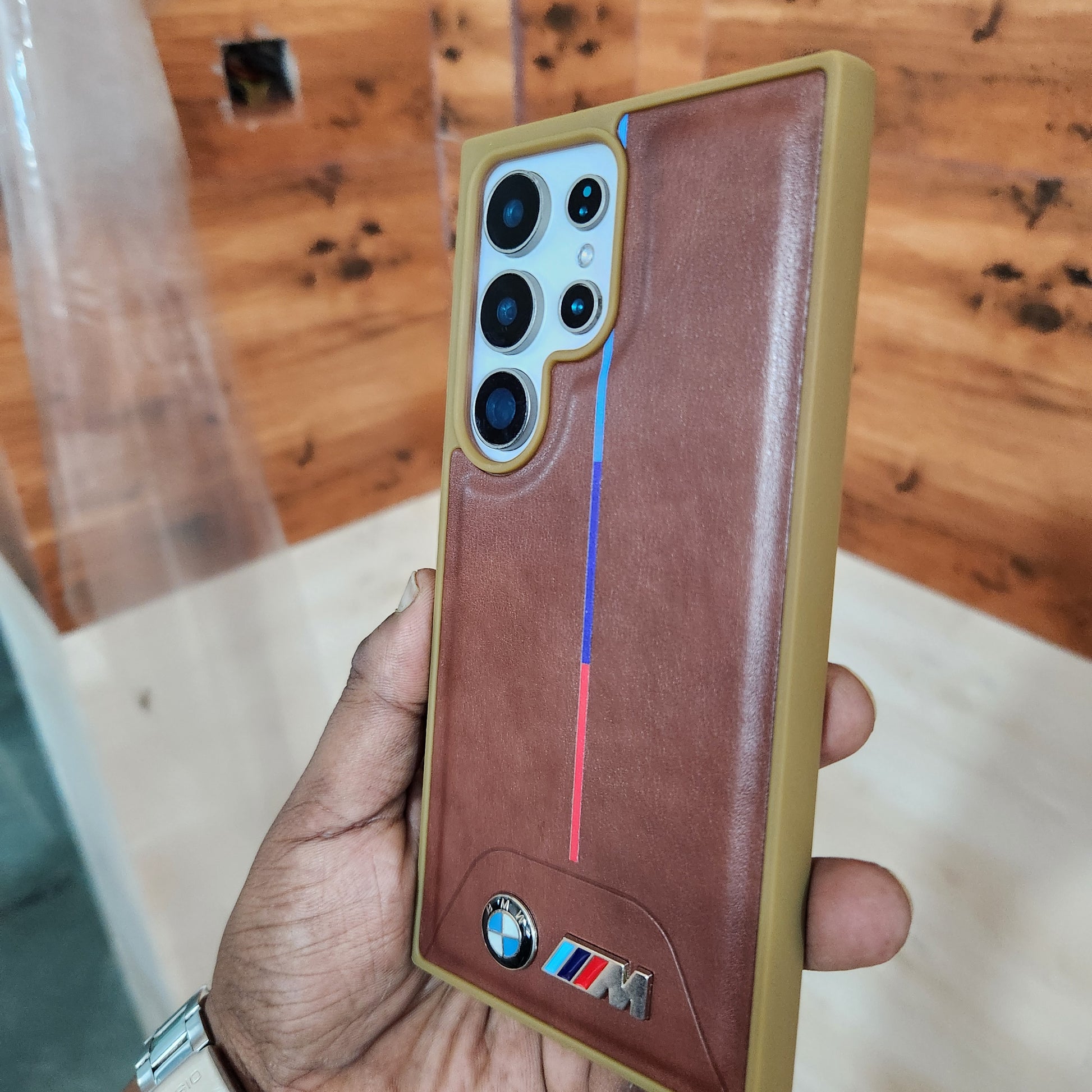 Samsung Galaxy S24 Ultra BMW M Sports Single Line PU Leather Case - Brown
