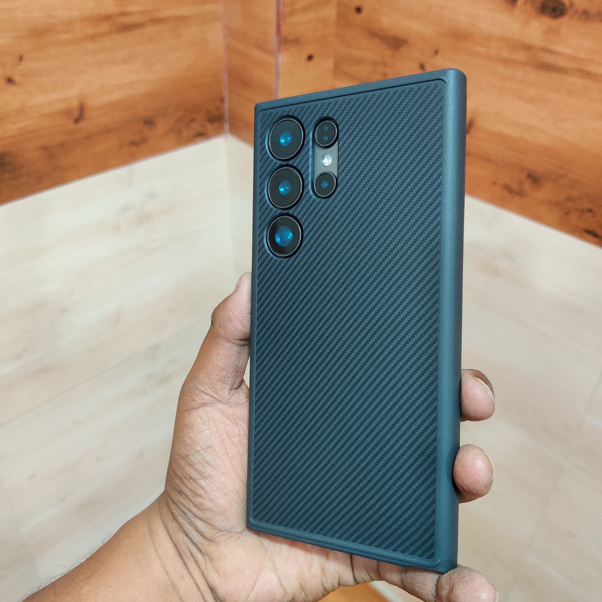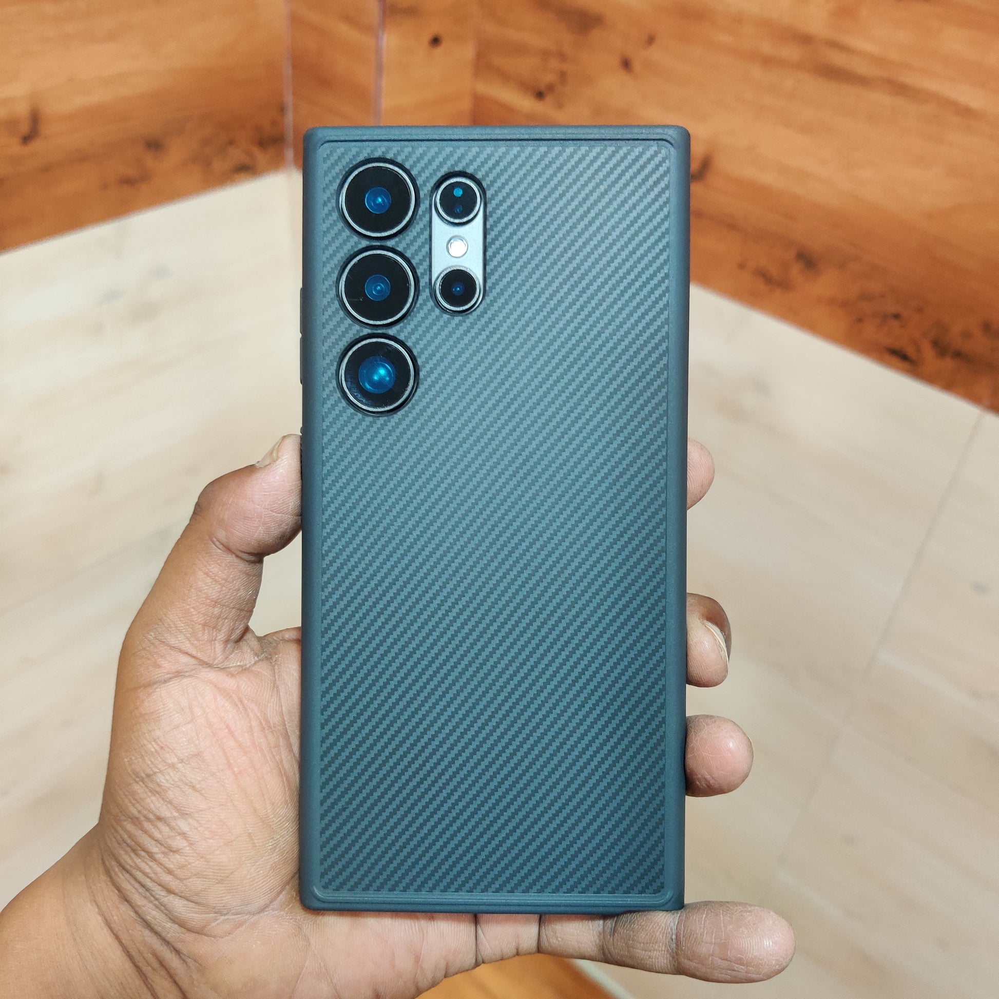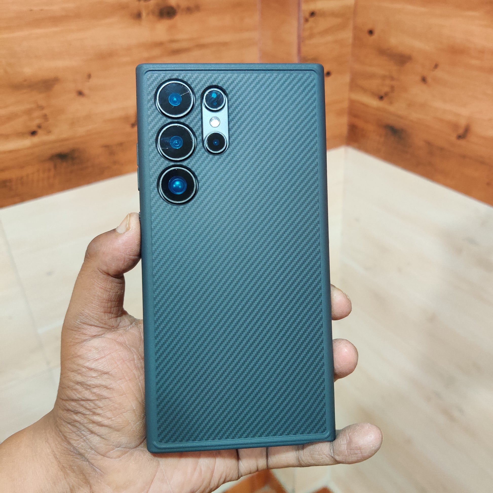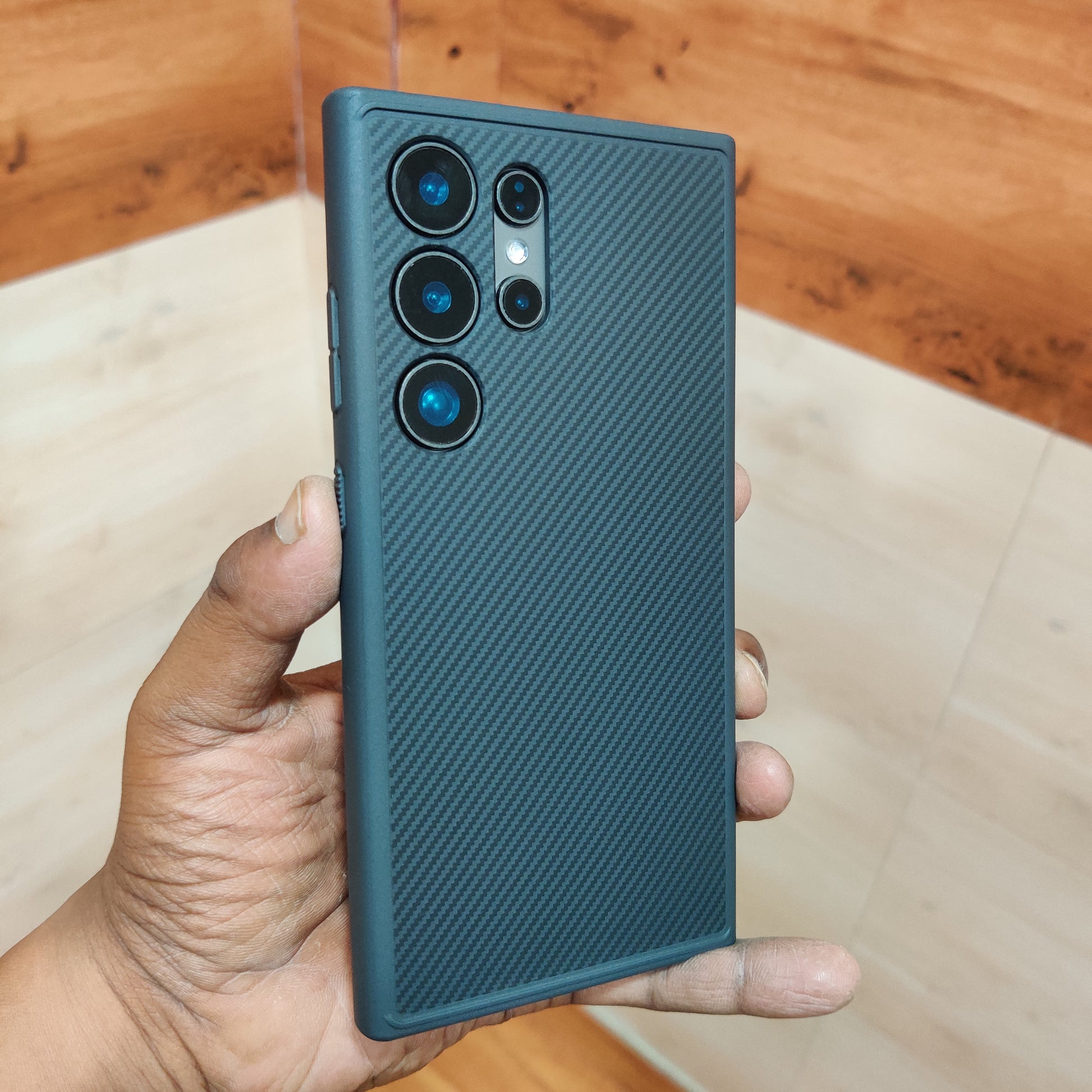 Samsung Galaxy S24 Ultra Carbon Fiber Textured Soft & Silky Shockproof Hybrid Case - Black
