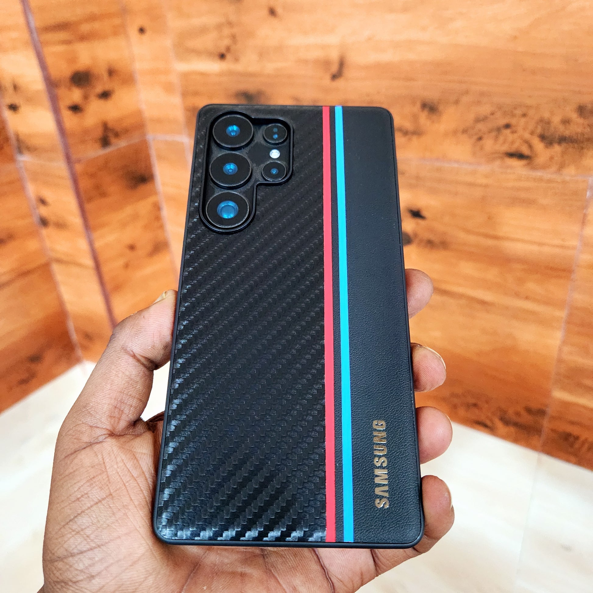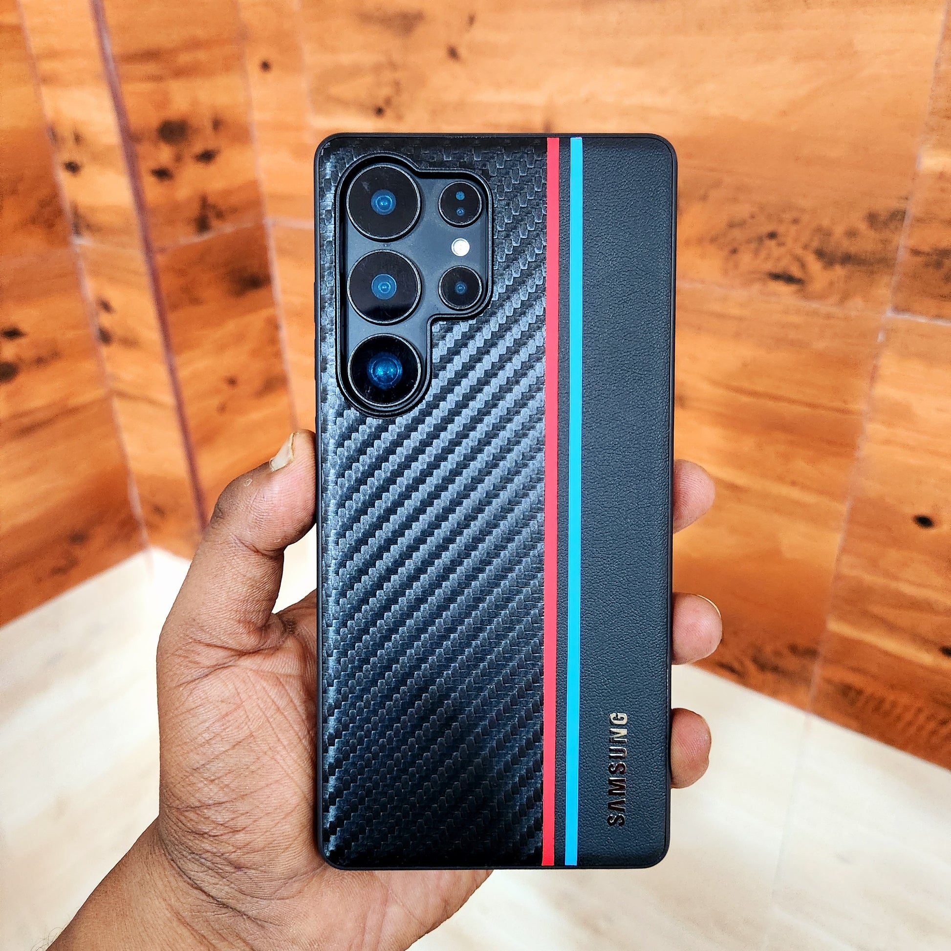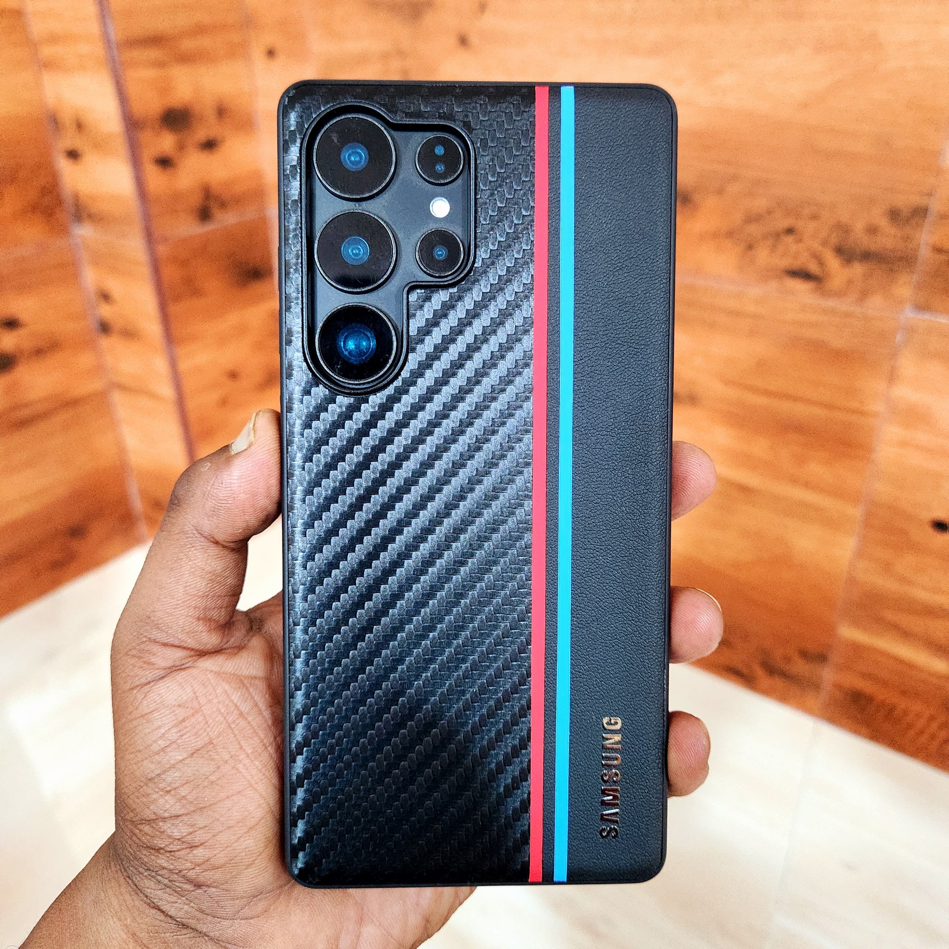 Samsung Galaxy S25 Ultra Luxury Designer Leather Carbon Case - Black