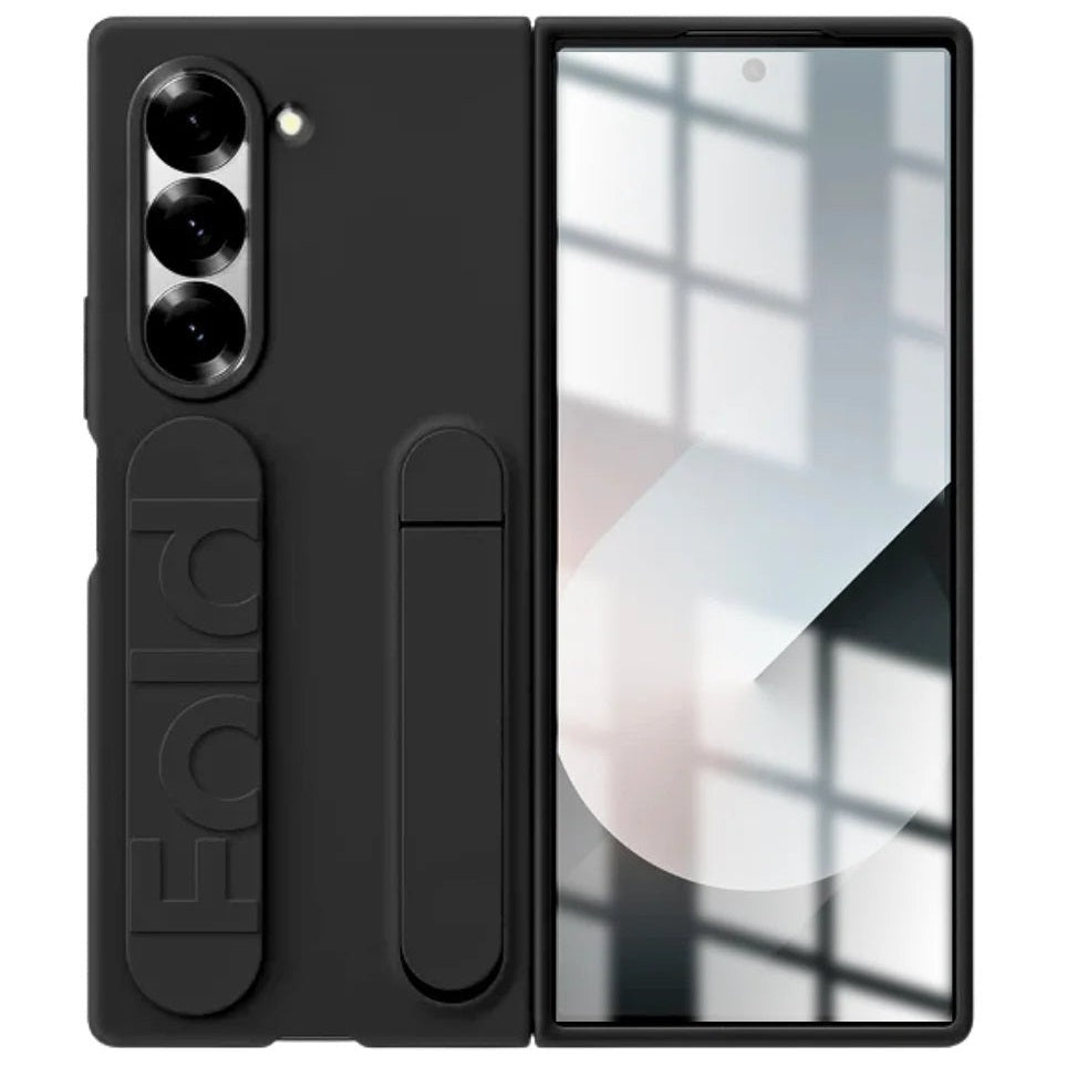Samsung Galaxy Z Fold6 Matte Skin Feel Band & Stand Case with Inbuilt Tempered Glass - Black