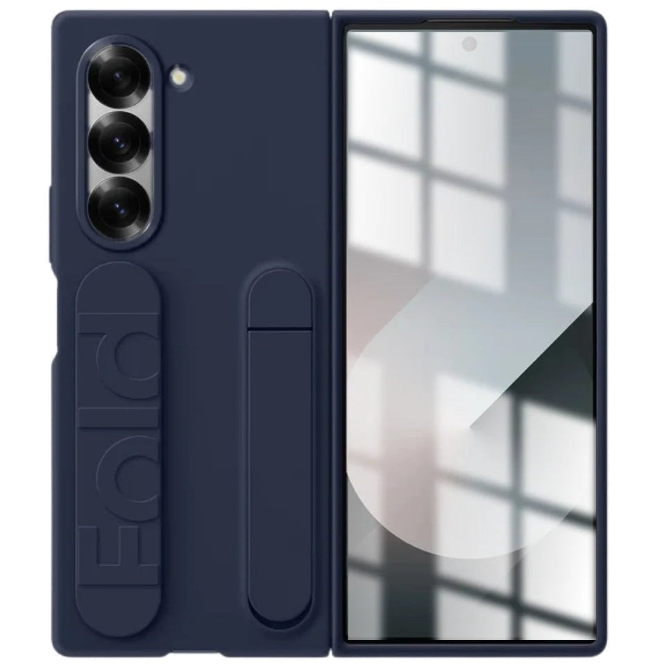 Samsung Galaxy Z Fold6 Matte Skin Feel Band & Stand Case with Inbuilt Tempered Glass - Blue