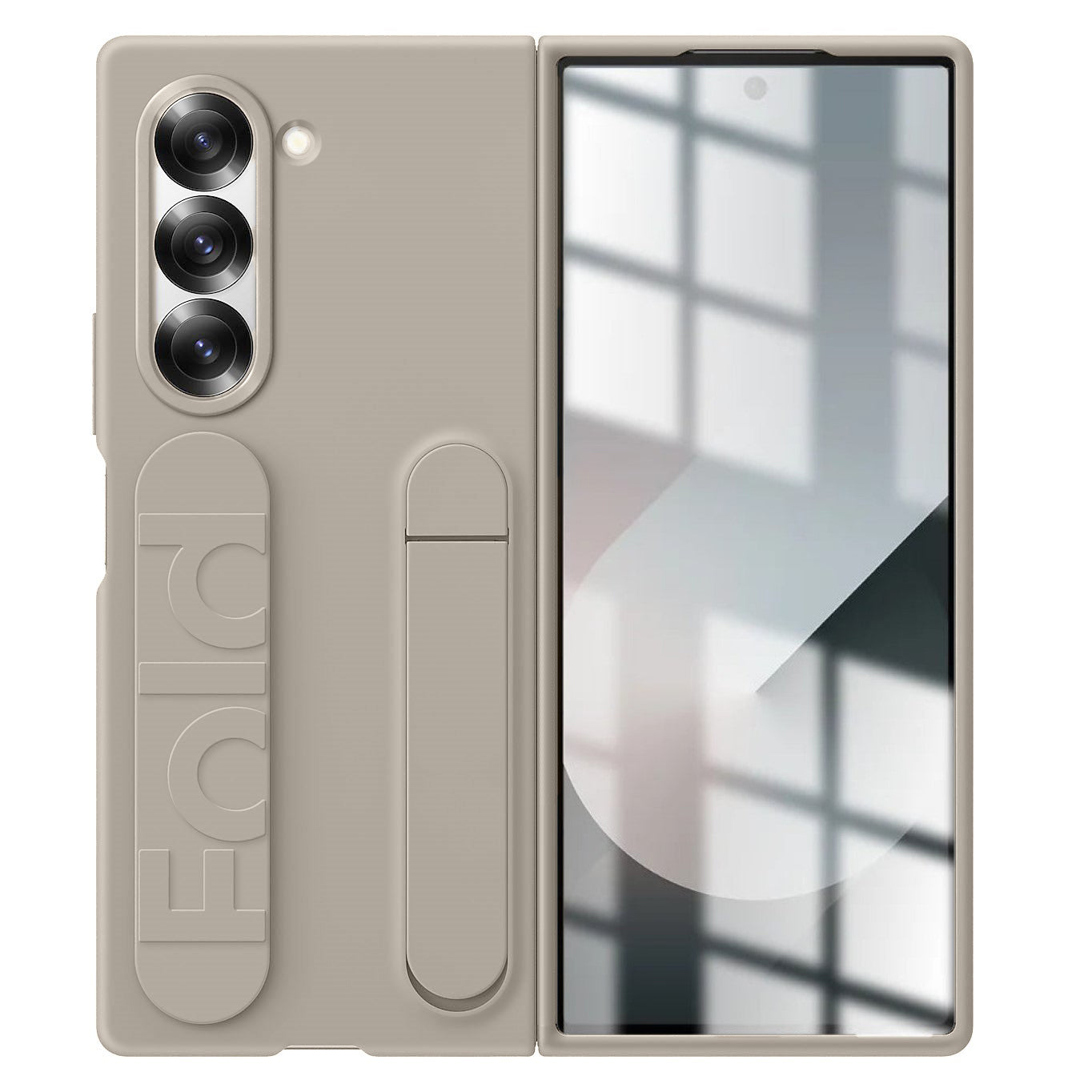 Samsung Galaxy Z Fold6 Matte Skin Feel Band & Stand Case with Inbuilt Tempered Glass - Sand