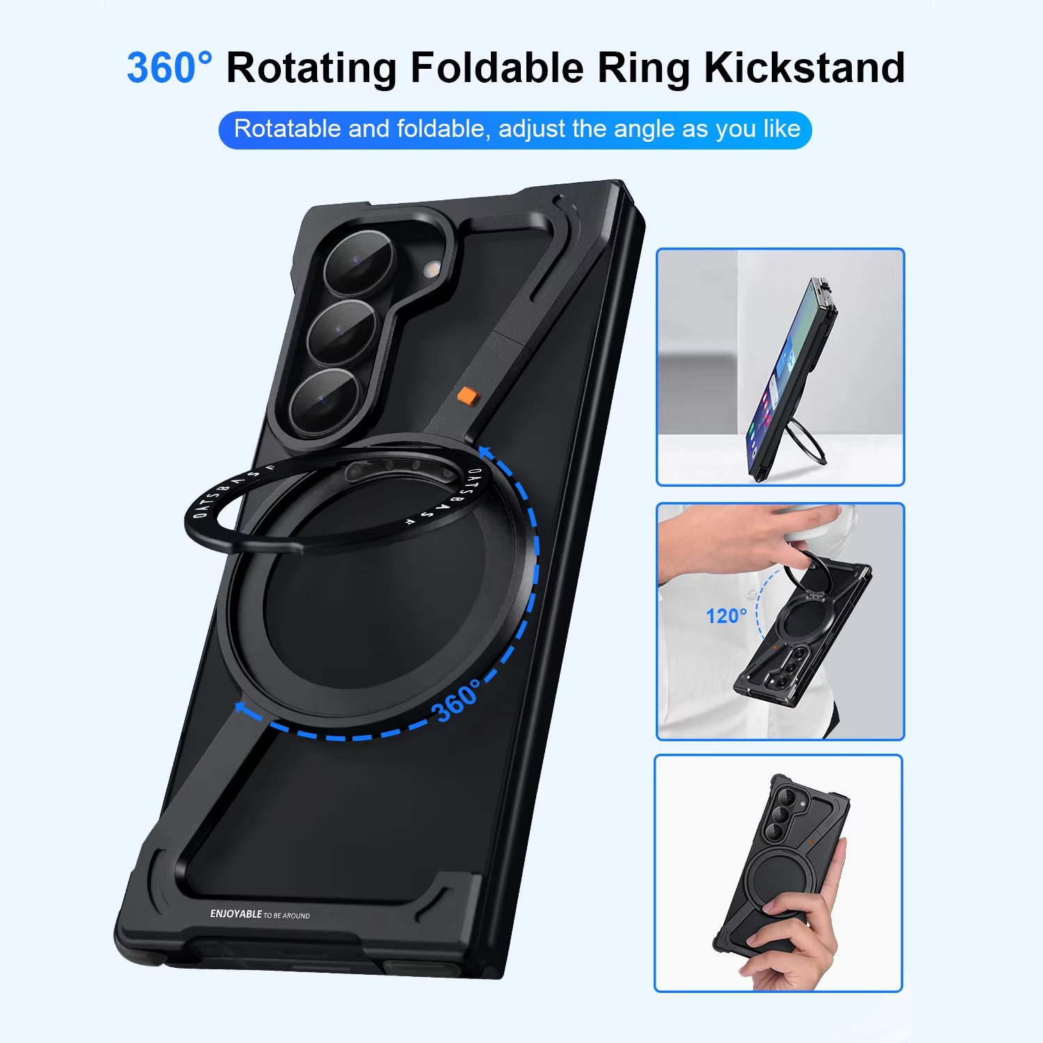 Samsung Galaxy Z Fold7 Framless Z Shape Metal Bumper with Magsafe & 360° Rotation Ring - Blue